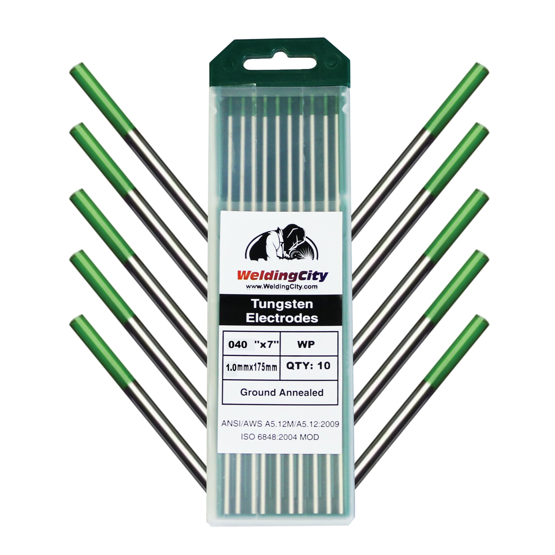 10-pcs WeldingCity® TIG Welding Tungsten Electrode Pure (Green) 0.040" x 7" (10 per Box)