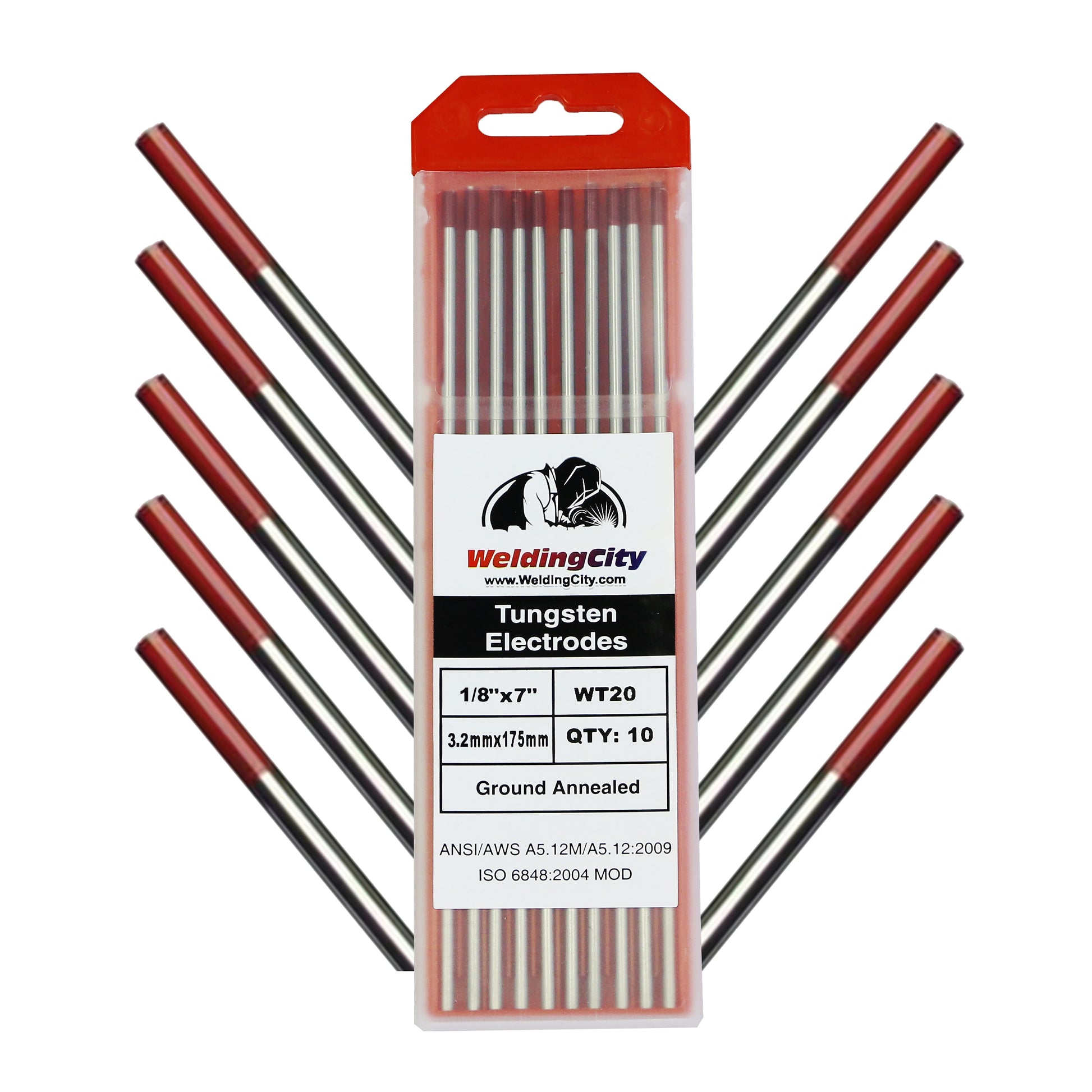 10-pcs WeldingCity® TIG Welding Tungsten Electrode 2.0% Thoriated (Red) 1-8" x 7" (10 per Box)