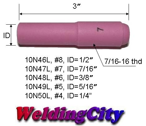 • Long alumina ceramic nozzle 10N47L #7 for use with 17, 18 and 26 TIG torches.