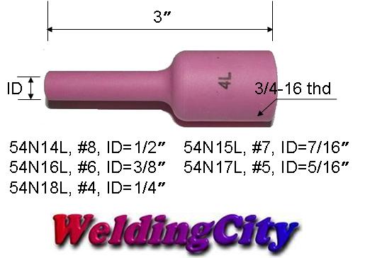 • 2-pcs long gas lens Alumina ceramic cup 54N18L #4 for torch 17, 18 and 26.