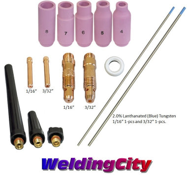 WeldingCity® 15-pcs TIG Torch Accessory Kit Assorted 1-16-3-32 with 2.0% Lanthanated (Blue) Tungsten Electrodes