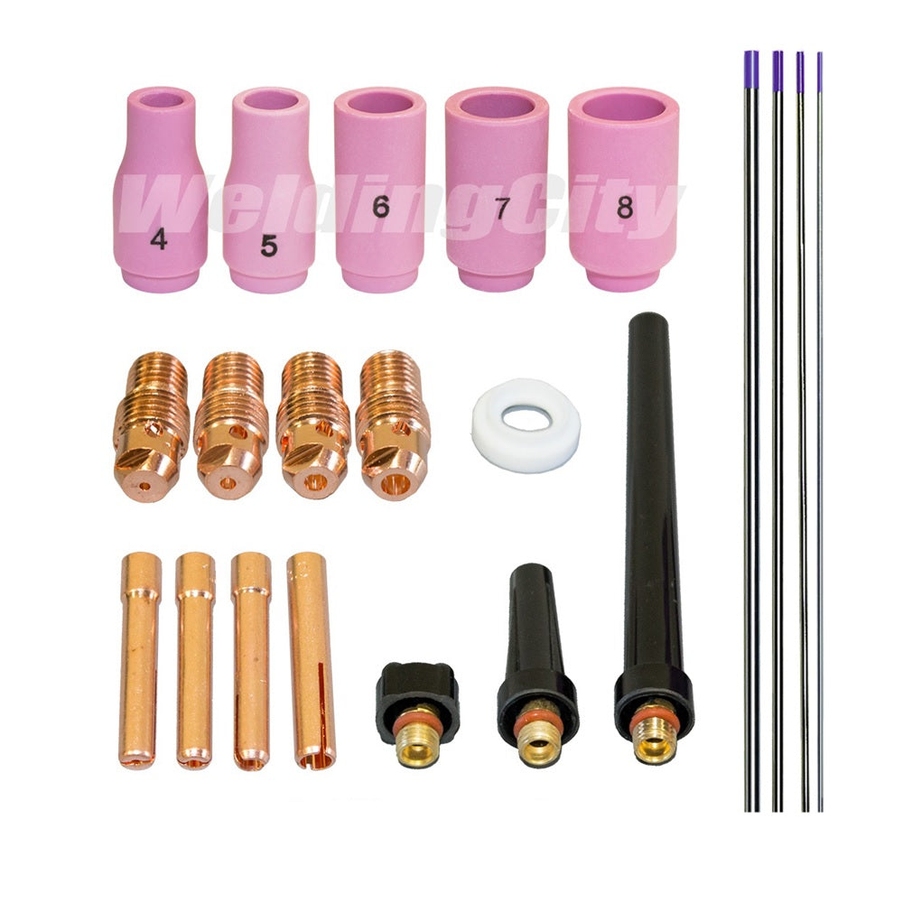 WeldingCity® 21-pcs Torch Accessory Kit Assorted Sizes 040-1-16-3-32-1-8 with Selectable Tungsten Electrodes for Regular Setup