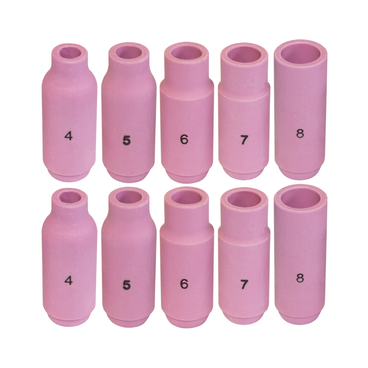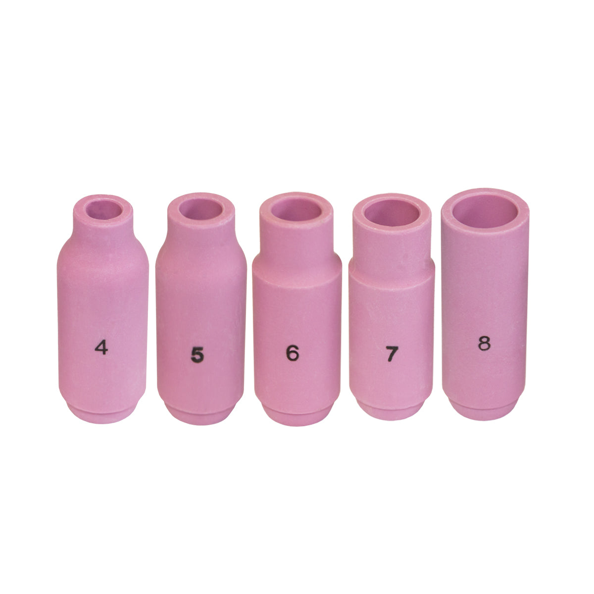• Assorted sizes (#4, #5, #6, #7, #8) 10N-series Alumina ceramic cups for 17, 18 and 26 series TIG welding torches.