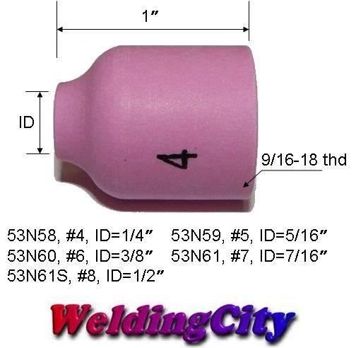 • 53N series gas lens Alumina ceramic cups for 9, 20 and 25 series TIG welding torches.